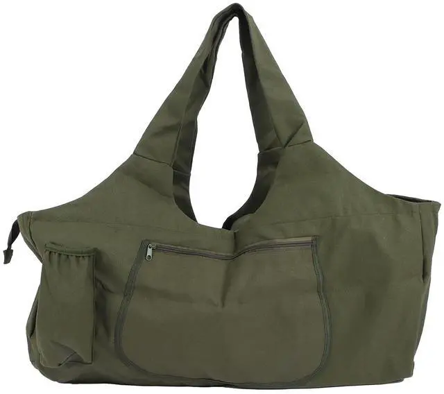 Military Green Oversized Yoga Bag, Canvas Travel Shoulder Bag with 4 Outer Pockets, Durable Fitness Luggage for Women and Men, Portable Gym Bag for Travel Outdoor Use