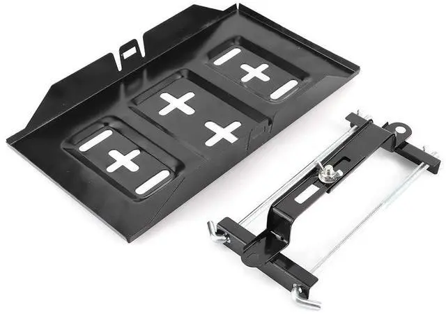 Universal Battery Holder Tray with Hold Down Clamp Bracket Kit, Metal Battery Tray Mount for Car Accessory, Sturdy Black Battery Hold Down Clamp with Recessed Slots (23CM)