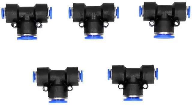 10Pcs Pneumatic Connectors Plastic Air Hose T Tube Push to Connect Tee Union, PBT 3 - Way Fitting with One - Button Release for 6mm and 12mm PU Tubing in Natural Gas