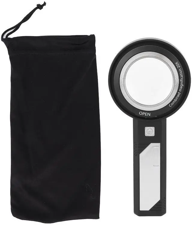 Reading Magnifier Dual Lens Ergonomic Handheld Loupe with LED Light, 8X 20X Magnifying Glass for Reading Jewelry Appraisal, Built - in 6 LED Illumination for Seniors and