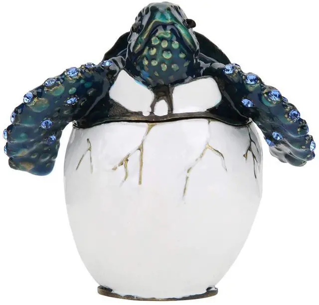 • Enameled Ornament Easter Tortoise Eggs Shape Jewelry Box, Enamel Craft Home Decoration, Handcrafted Enamel Jewelry Case with Lifelike Texture for Desk Shelf Display