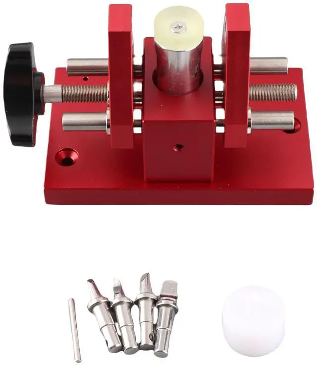 Watch Back Case Remover Opener Tool, Steel Watch Repair Holder with Ergonomic Handle, Adjustable Jaw for Most Watch Sizes, Includes Pry Knives and Accessories for