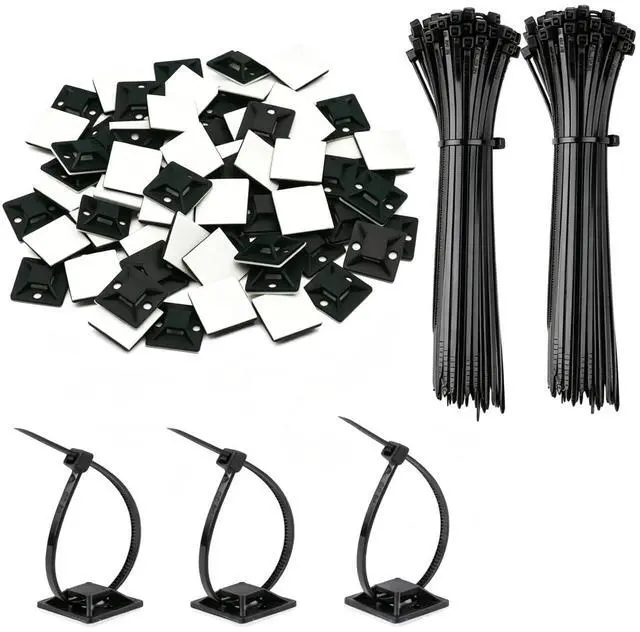 Zip Tie Mounts 200 Pack 3/4 Zip Tie Adhesive Mounts Self Adhesive Cable Base Holders with Multi-Purpose Tie wire clips with screw hole, Anch For Home Office Cable Management