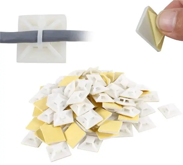 Zip Tie Mounts 400PCS White Two-color Self-adhesive Cable Tie Fixing Base Plastic Suction Cup Fixing Plate Plastic Cable Card Cable Tie Base For Home Office Cable Management