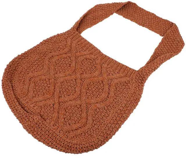 • Woven Crochet Crossbody Bag Vintage Brown Woolen Yarn Messenger Bag Travel Storage Pouch All-match Shoulder Handbag for Women