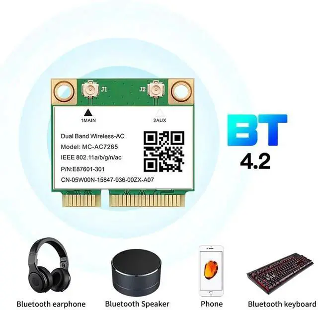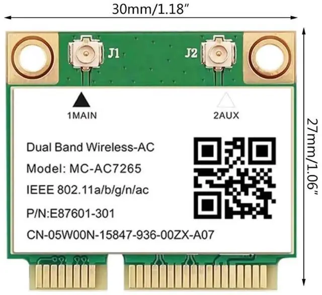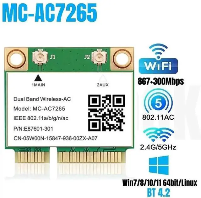 WiFi Card MC-AC7265 Wireless AC-7265HMW 867Mbps+300Mbp Dual Band 2.4G hz/5GHz Bluetooth 4.2 802.11 ac 2x2 Mini PCI-E Network Card