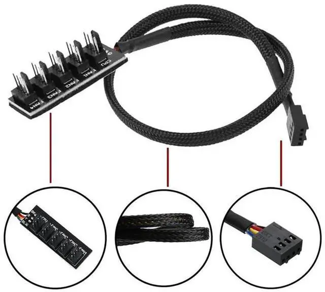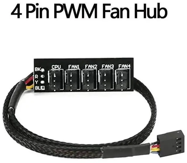 4/3PIN PWM Fan Hub CPU Cooling Fan Power Cable Hub Adapter Sleeved Case Splitter for Computer Cooler Case Fans 1 to 5( 15.7 Inch)