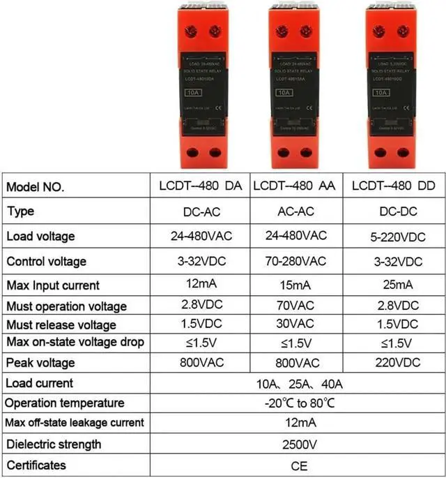 Solid State Relay 10A 25A 40A DIN Rail Solid State Relay Single Phase SSR with Heatsink DC Control AC/AC Control AC/DC Control DC(DC Control DC, 25A)
