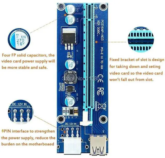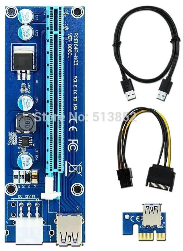 Newest VER009 USB 3.0 PCI-E Riser VER 009S Express 1X 4x 8x 16x Extender Riser Adapter Card with SATA 15pin to 6 pin Power Cable