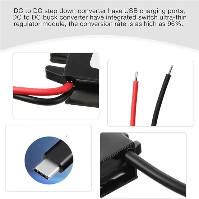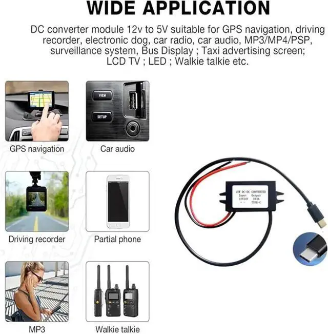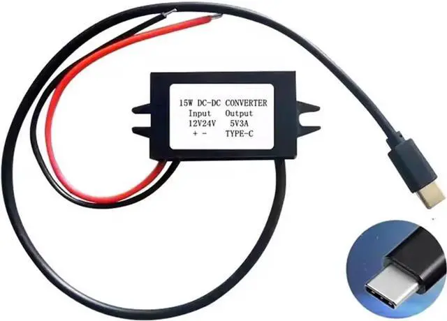 12V/24V to 5V 3A 15W Step Down Converter Type-C Module Power Adapter Compatible with Cell Phones