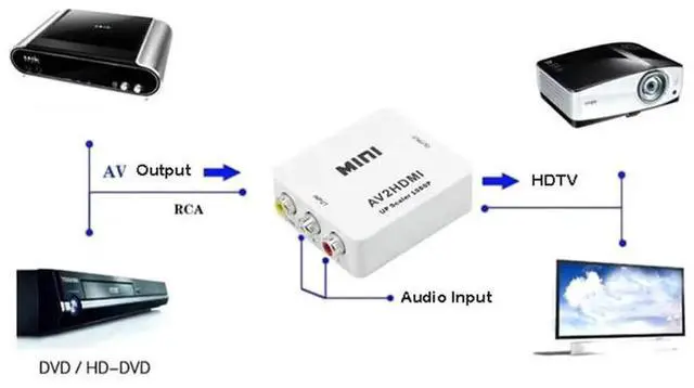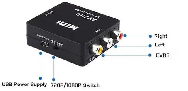 AV to HDMI-compatible Converter HD 1080P RCA to CVBS Audio Video Adapter Set Top Box TV Monitor for PS2 PS3 DVD USB Connector