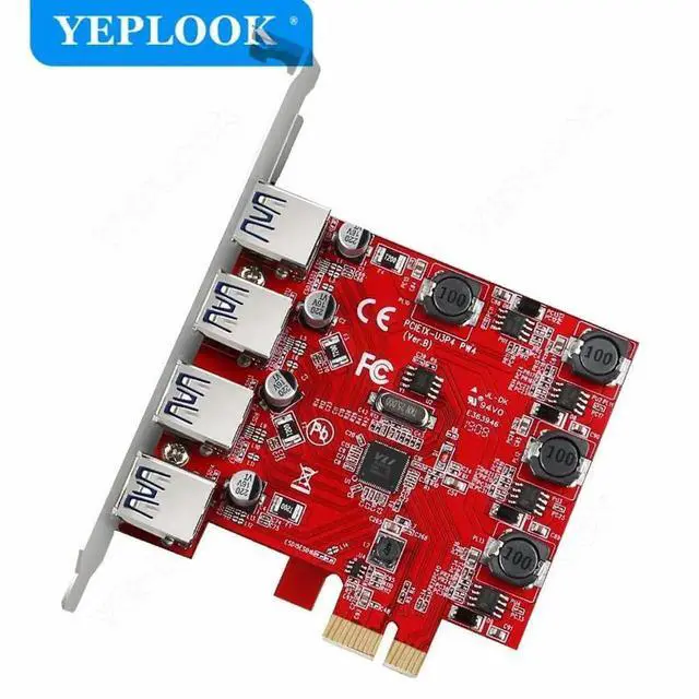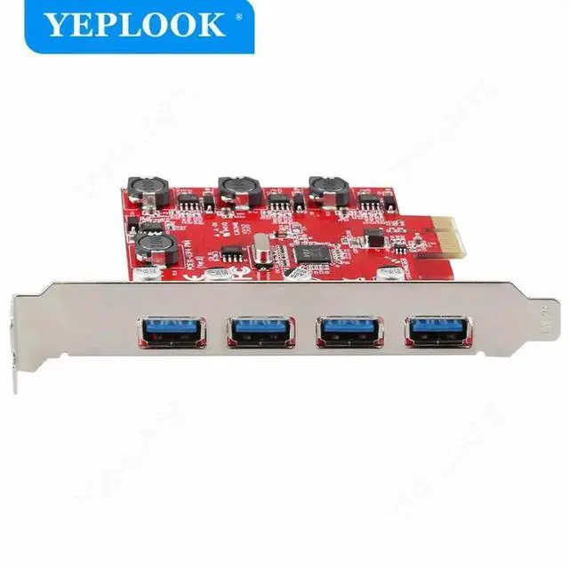 PCIe x1 USB 3.0 Expansion Card 4 Ports USB 3.0 Hub High Speed 5Gbps Riser Card Adapter Red PCB Board VL805 Chipset for Desktop
