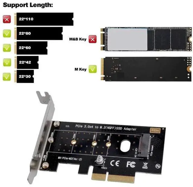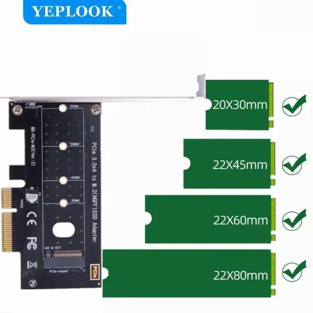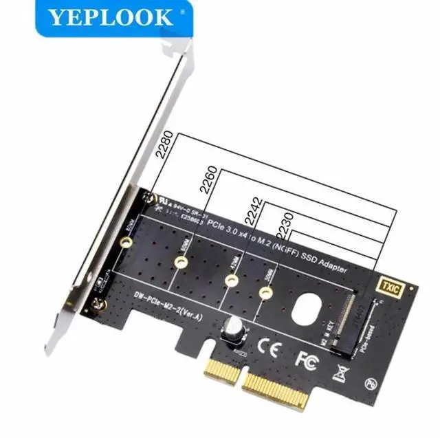 PCIe 3.0 to M. 2 NGFF SSD Adapter for PCIe NVME/AHCI SSD M Key Support X16 X8 X4 22*80 22*60 22*42 22*30 with Low Profile Bracket