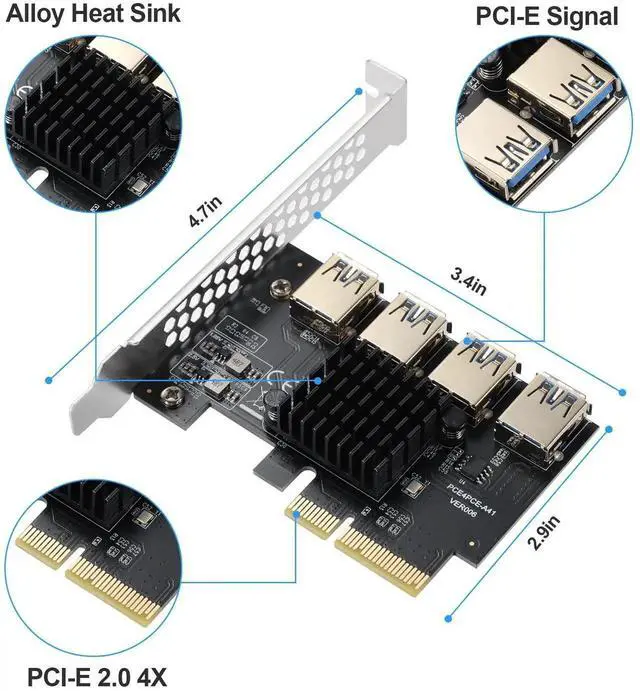 Features:Effectively solve the problem of insufficient PCIE interface on the motherboard, and one interface can be expanded to 4 PCIE interfaces. PCI-E slots for motherboards don't degrade computing power.
