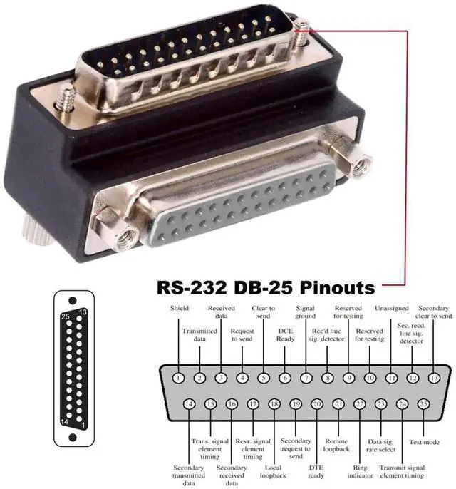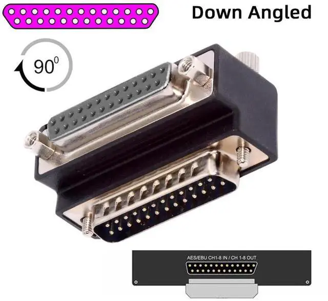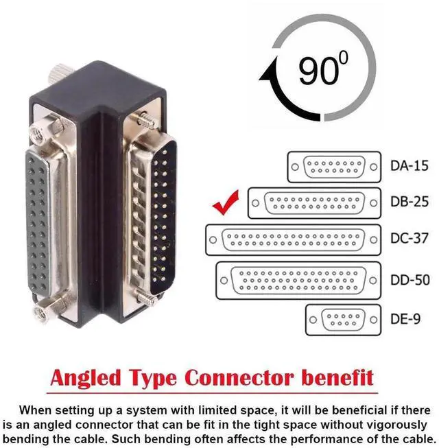 The 25Pin male with nuts and the Female with Screws. 25 pin density plug to socket adaptor. Two rows contacts 90 Degree Angled Adapter.