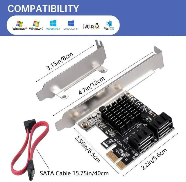 [Extensive compatibility]Support Windows XP / 2003/7/8/10 (32/64bit) / MAC/ Linux and other operating systems. The PCIE SATA card is compatible with PCIE X1,X4, X8, X16 slots.