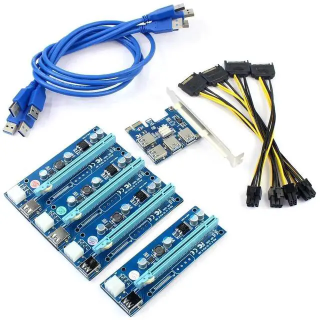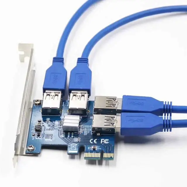 1-slot PCI-E 1X to 4 slot 16X riser card with high speed USB 3.0 cable.