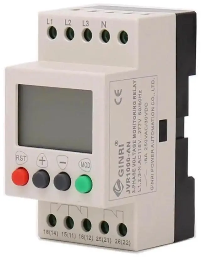 JVR1000-AN LCD Three-Phase Voltage Monitoring Relay with Overvoltage Undervoltage Phase Sequence Phase Loss Neutral Loss