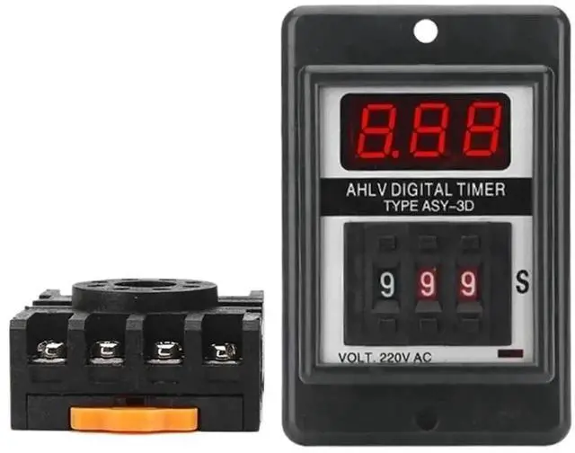 ASY-3D Delay Timer Time Relay 8PIN with Base DC12V DC24V AC110V AC220V 1-999S Digits programmable Timer delay Relay (AC220V)