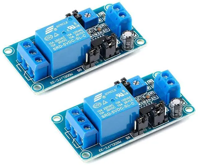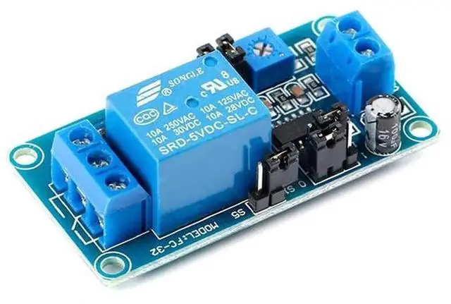 The 5V delay relay module adopts relays with a maximum current of 10A. The module uses double-sided FR-4PCB board, and the overall layout of the module is reasonable, beautiful and generous. Using original high-performance delay chips for better performance. Equipped with a delay adjustment potentiometer, the shortest time is 0.1 seconds and the longest can reach 1 hour. It also has an anti reverse power protection diode, which can effectively protect the product.