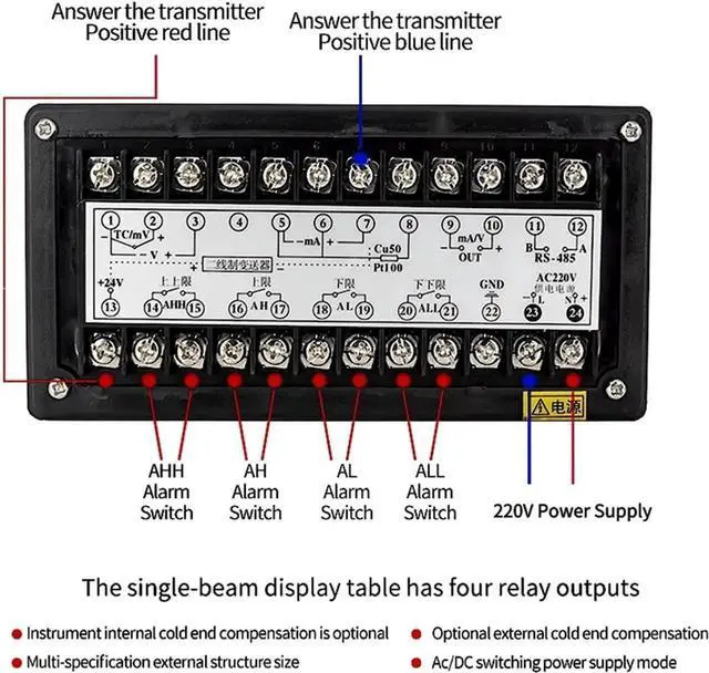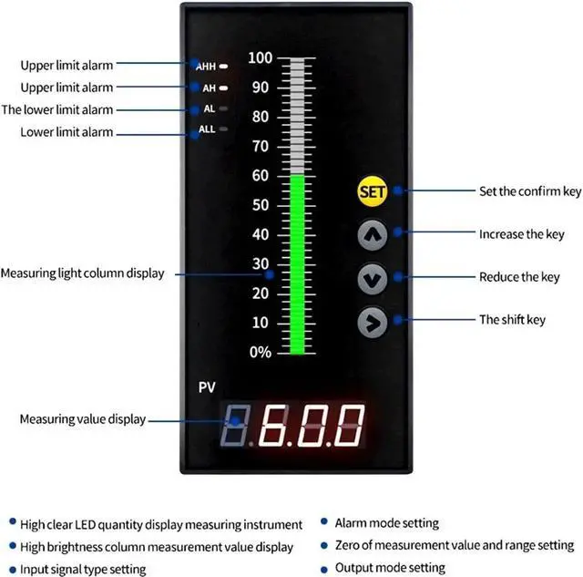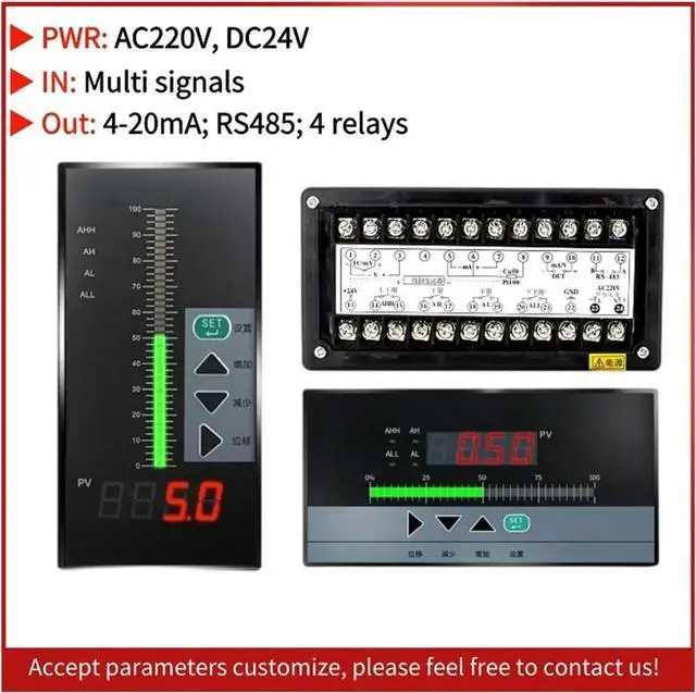 Intelligent Digital Display Temperature Automatic Liquid Level Controller RS485 4 Relay Alarms Tank Level Control Instrument (4 Relay Out DC24V)