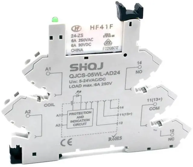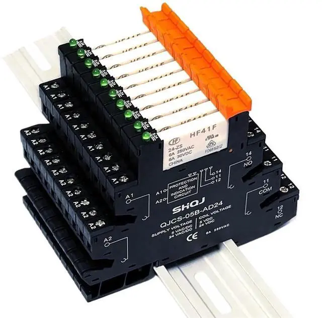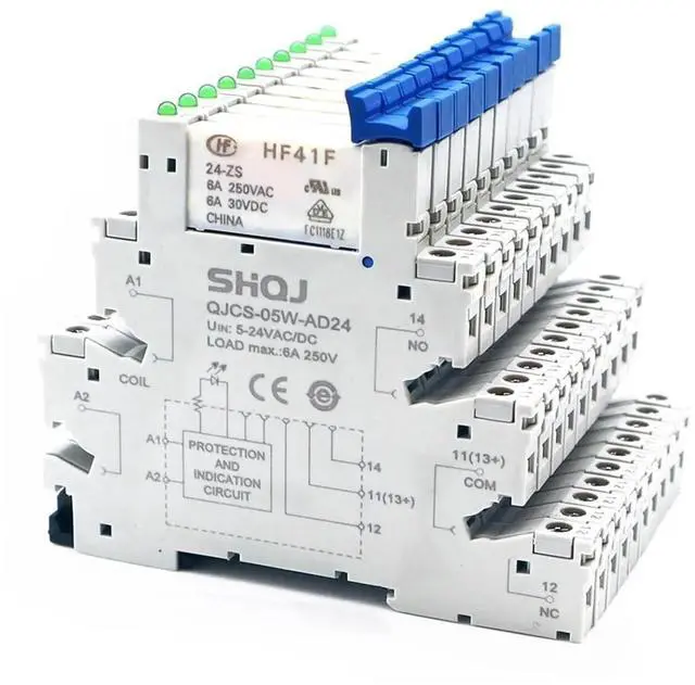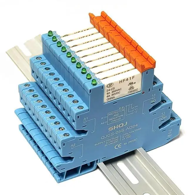 10PCS QJCS-05 -AD24 Slim/SSR Relay HF41F 24-ZS 5V 12V 24V 230V 6A 1CO Mount On Screw Socket with LED Wafer Relay (24V Blue Screw)