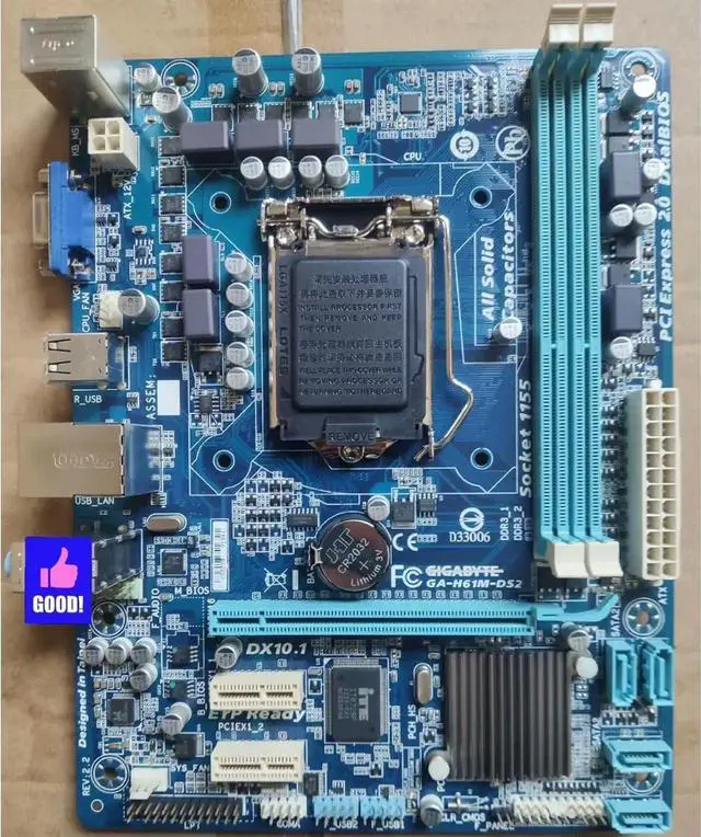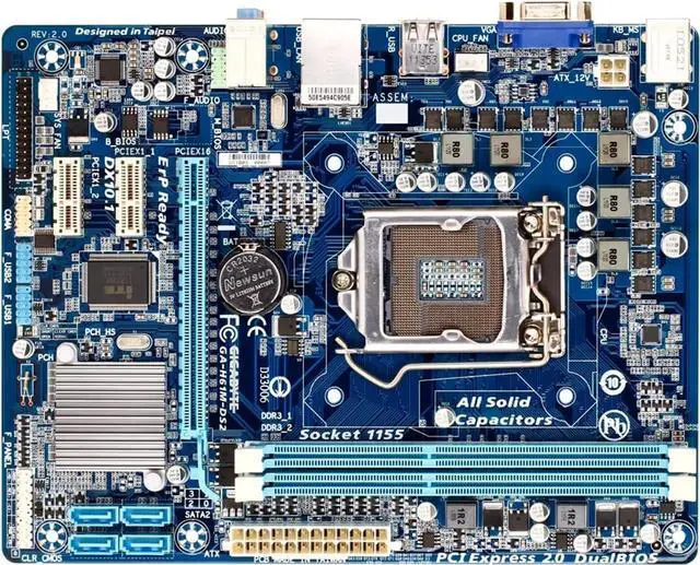 Motherboard Fit forGigabyte GA-H61M-DS2 for 4th Gen forIntel LGA 1155 with I/O Back Plate Shield - Industrial PackagedNon-Original Packaging
