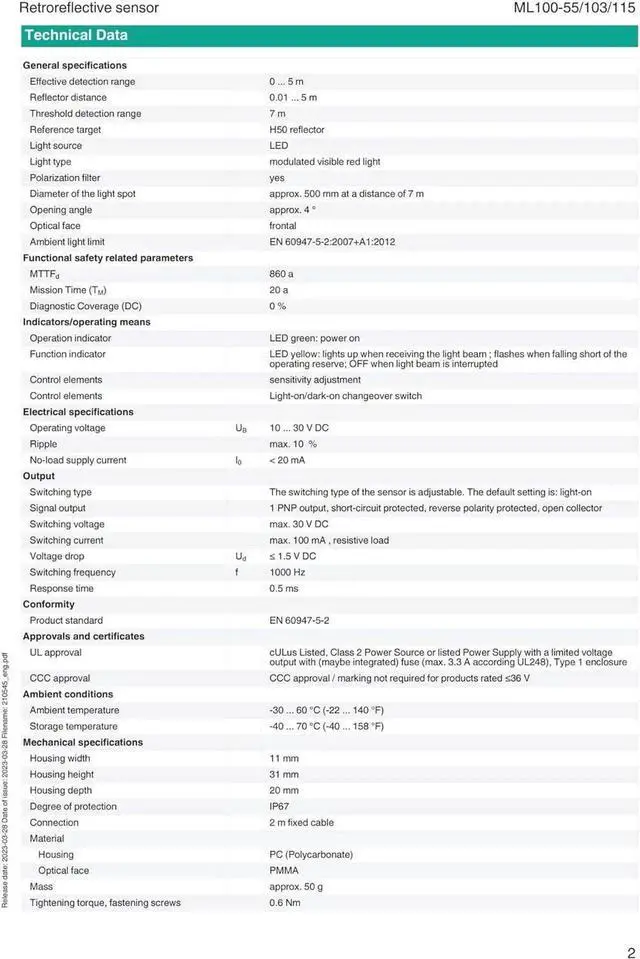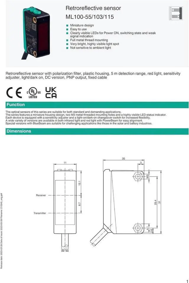 1PCS ML100-55/103/115 Reflector Type with Polarization Filtering Function