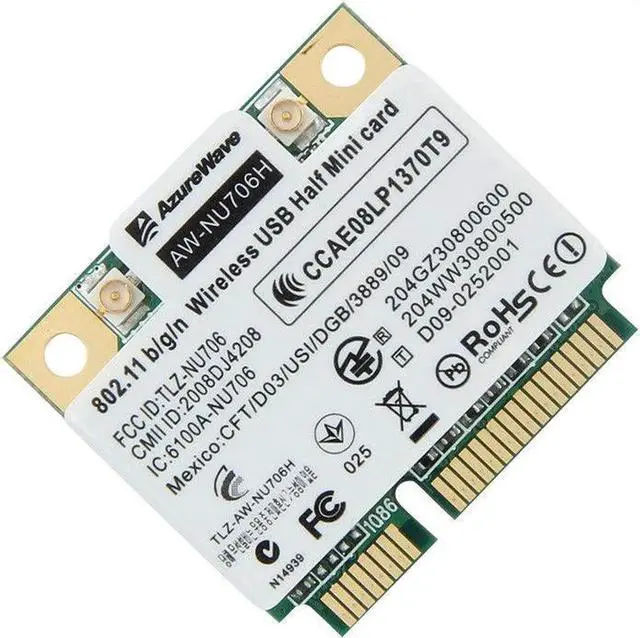 Face: Mini PCI-ESupport PHY rate from 150 to 300Mbps20MHz/40MHz bandwidth support