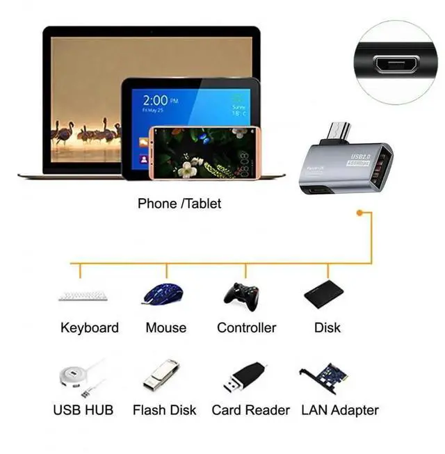 Micro USB 2.0 to Type-A Female OTG Host Adapter 90 Degree Angled with USB Power for Phone Tablet