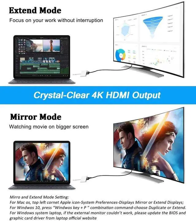 - [Compatible Devices]: This USB C to HDMI adapter compatible with usb c devices with Thunderbolt 3/4 port or support DP ALT mode, before you purchase, please make sure your USB-C devices support video transfer. this usb c hub compatible with Macbook Air/Pro, iPad air/pro, iphone 16/15 series and more usb-c laptop/tablet/smartphone as well as game console such as steam deck, switch.