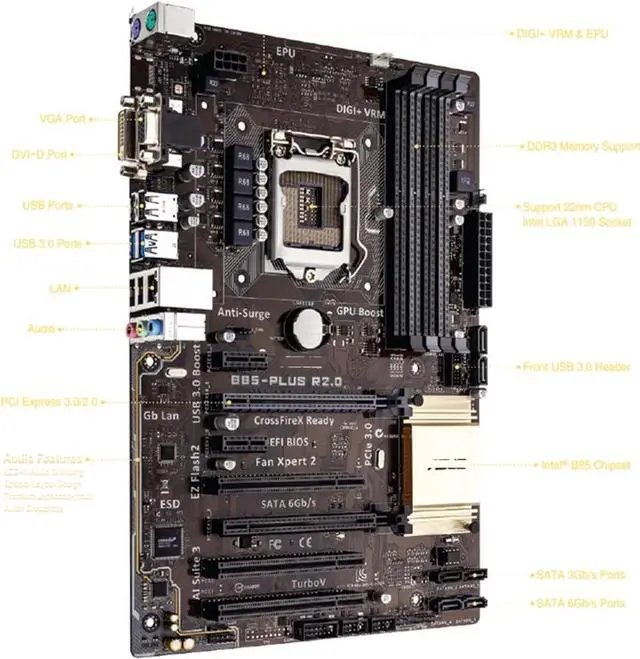 Motherboard Fit forASUS B85-PLUS R 2.0 for 4th Gen forIntel LGA 1150 with I/O Back Plate Shield