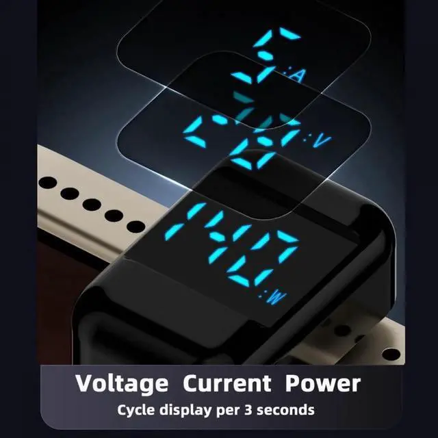LED light making charging visible; The adapter with an LED digital display screen that can display charging voltage, current and power in real time. It has a visual design that allows you to know the charging speed in real time and monitor device status.