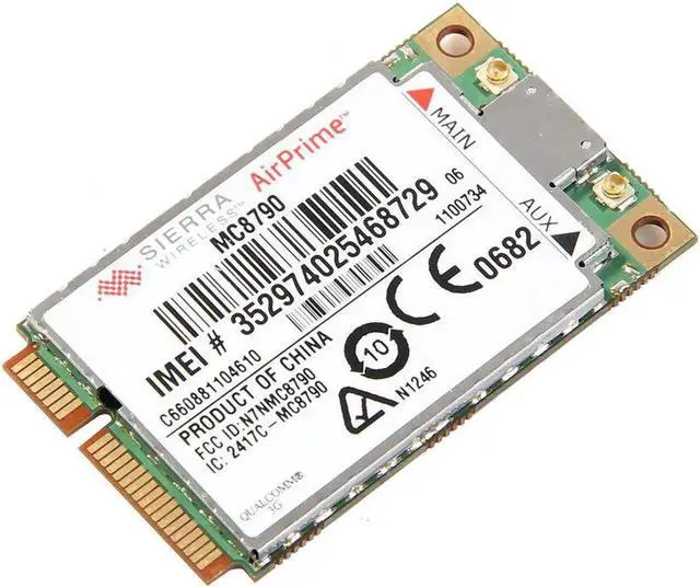 The powerful AirPrime MC8790 PCI Express Mini Cards cost effectively integrate into a variety of OEM devices to offer complete wireless solutions over HSPA-capable 3G/UMTS networks. From point-of-sale devices to ruggedized laptops, the MC8790 will turn hardware devices into powerful communications tools with wireless data services.Features 3G/HSPApeak downlink speeds up to 7.2 Mbps and peak uplink speeds up to 5.8 MbpsIt offers UMTS/HSPA and quad-band GSM/GPRS/EDGE network.Suitable for embedding with laptop computersUses MSM6290 chipset from QUALCOMMTri-band 3GApproved for Telstra NextGDiversity antennasOperating Systems Windows XPWindows VistaWindows 7/8/8.1/10Operational Bands GSM 850GSM 900GSM 1800GSM 1900WCDMA 850WCDMA 1900WCDMA 2100Package include 1* Sierra MC8790 3G CardNot include CD Driver.