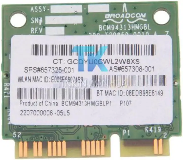 Card Description: This 2 in1 wireless network card which combines Wi-Fi and Bluetooth 4.0. This wireless network card is compatible with HP BCM94313HMGB 657325-001. With this powerful 2 in 1 wireless network card you could enjoy the entertainments, shopping and handling work on internet. It allows you to have access to your local network securely from internet. With fine workmanship and advanced technique, it is durable and stable in use that it will not easy to get disconnected. This wireless network card supports Bluetooth 4.0HS. The signal is powerful and stable. The Wi-Fi brings you faster speed on internet connecting and larger area to use. It is really a great portable device for businessman, travelers or someone who always need to use the laptop easily and freely.