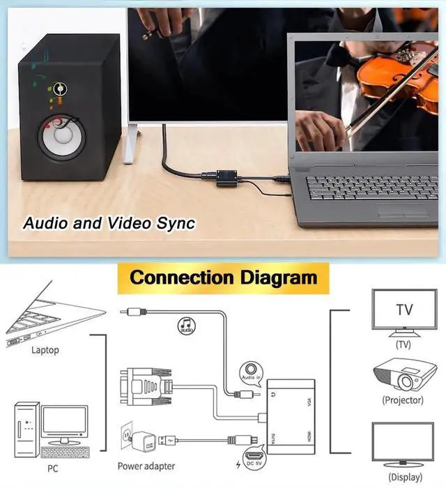 - [Durable and Portable]: Aluminum frosted shell, which has the advantages of anti-skid, wear-resistant, anti-scratch, etc. This VGA adapter is easy to carry on a business trip in your laptop bag. You can expand the computer screen to a large screen(Projector/Monitor) for presentation. It is super convenient for meetings and family entertainment.