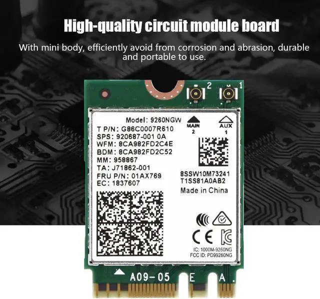 Features: Professional wireless WIFI card with Bluetooth 5.0, strong and stable signal receiving, allows you an incredible experience in online surfing experience. Widely compatible for most PC/ laptops/ All-in-One machine/ AD player with NGFF M. 2 slot. 2.4 GHz + 5 GHz dual-band wireless technology, support wireless protocol IEEE 802.11 a/b/g/n/ac. Provides up to 1.73G bps transmission rate, ensures fast network speed and wide coverage. High-quality circuit module board with mini body, efficiently avoid from corrosion and abrasion, durable and portable to use.