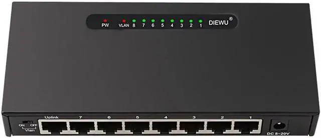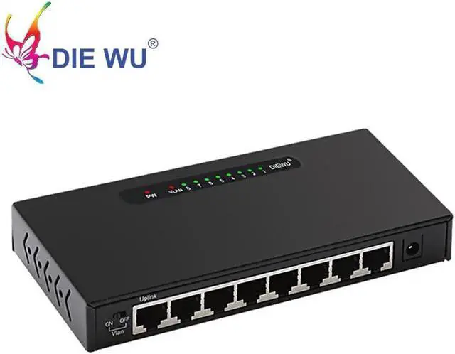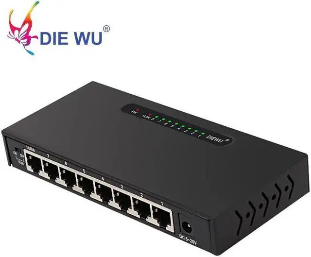 8 Ports Fast Ethernet Switch 10/100Mbps RJ45 Hub Ethernet Network Switch VLAN switch adapter for desktop metal case