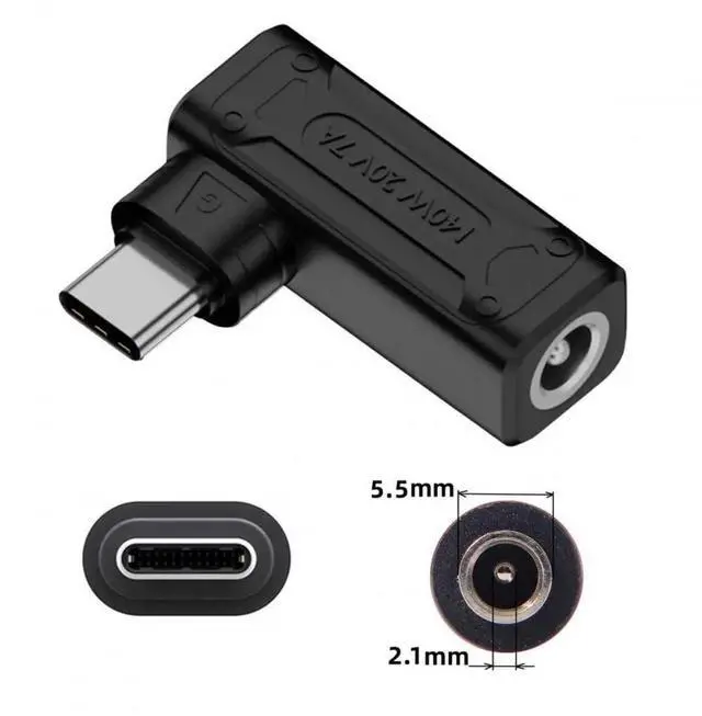Adapter 140W 100W DC Jack 5.5x2.1mm Input to USB-C Type-C Angled 90 Degree Power Plug Charge Adapter for Laptop Phone