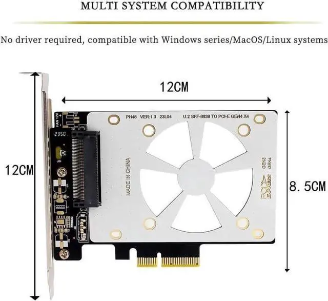 PH46 PCIe 3.0 X4 to U. 2 SFF-8639 Adpter Card GEN4 High Speed Compatible with U. 2 NVME SSD X4 X8 X16 Slotproduct specification