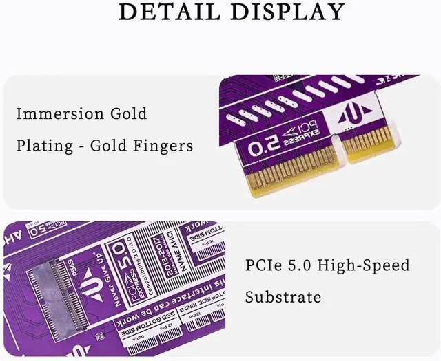 The PCIe 5.0 SSD Adapter Card is designed for users who need to upgrade or expand storage from Apple MacBook SSDs (2013\u20132017) to desktop PCs. Supporting up to 20Gbps theoretical transfer speed, this adapter ensures smooth and fast data access for NVMe and NGFF SSDs. With SSD 12+16 pin and M Key interfaces, it provides wide compatibility for both Apple proprietary SSDs and standard desktop connections.