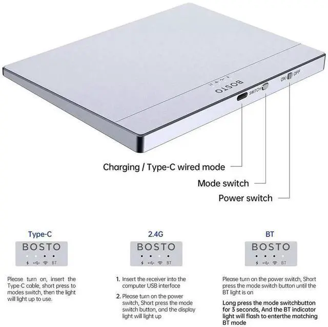• Bluetooth-Compatible Touchpad Multi-Gesture Portable Track Pad Type-C Rechargeable USB Touchpad Mouse for 10/11