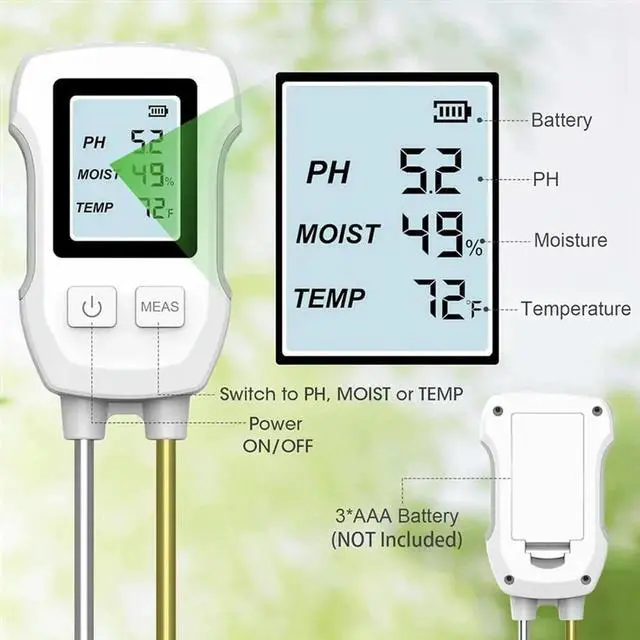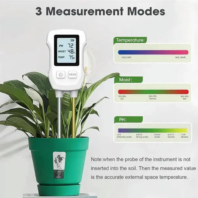 • 3 In 1 Soil Moisture Meter, Digital Plant Moisture Meter For Temperature/Soil Moisture/PH Meter, Soil Test Meter