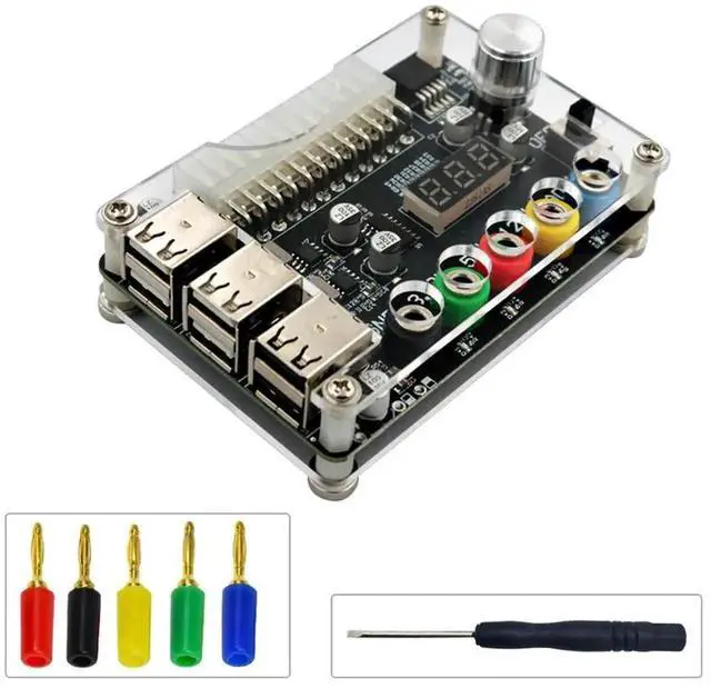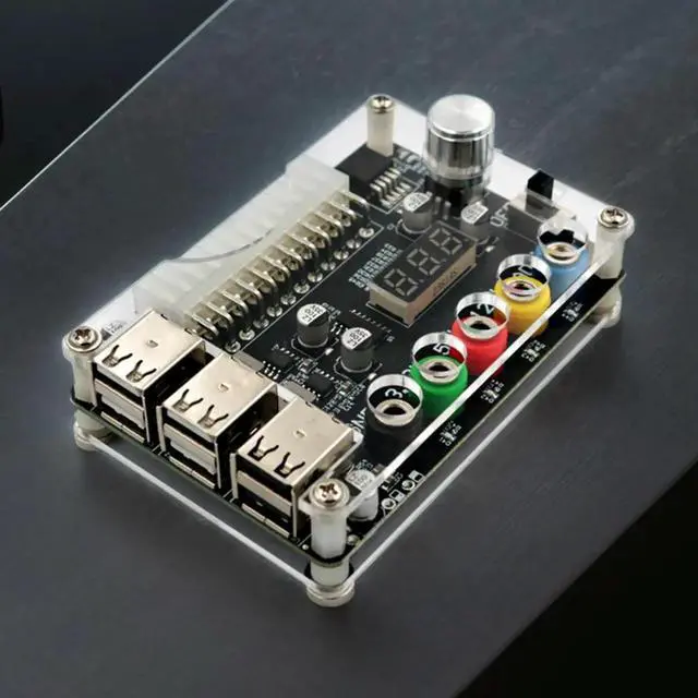 • 24Pin Power Module Adapter Connector Adjustable Voltage Knob Power Transfer Board 6 Ports USB 2.0 Supports QC2.0 QC3.0
