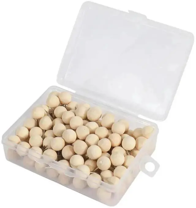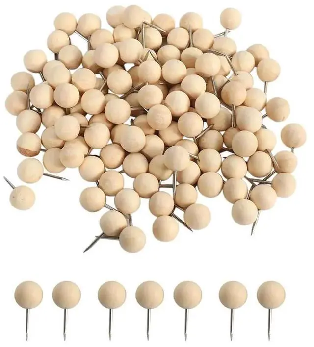• 390Pcs Round Wood Decorative Push Pins, Wood Head And Steel Needle Point Thumb Tacks For Photos, Maps And Cork Boards