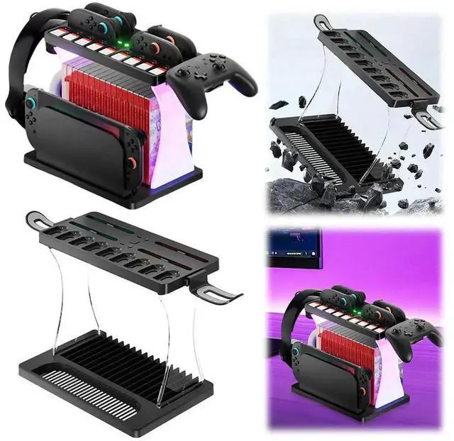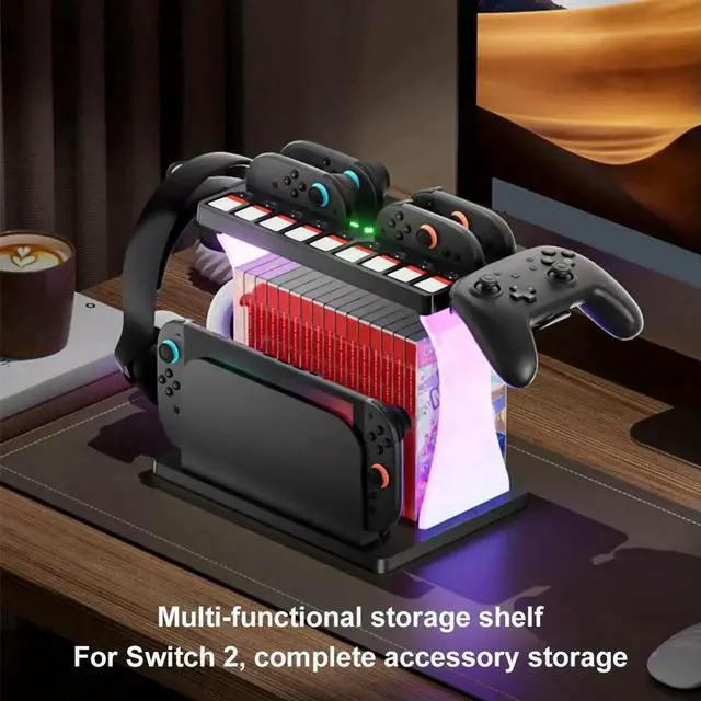 • Game Rack Multifunctional Organizer Rack Charging Stand Station for Nintendo Switch2 Game Holder Game Disk Rack