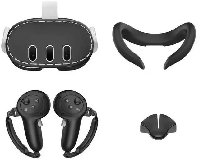 • Silicone Protective Cover Set Front Shell Headset Cover Anti-Slip Face Cover Sweatproof for Quest 3 Headset Accessories