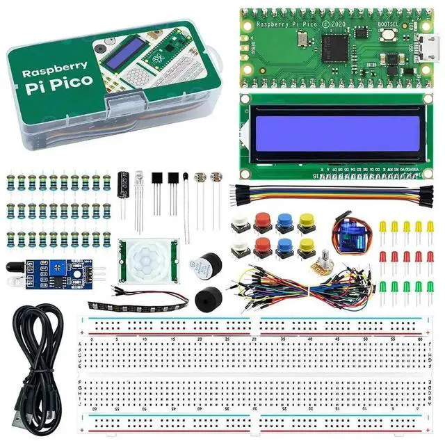For Raspberry Pi Pico RP2040 Basic Starter Kit LCD1602 Display Module Breadboard for Raspberry Pi Beginners & Software Engineer