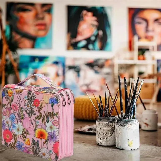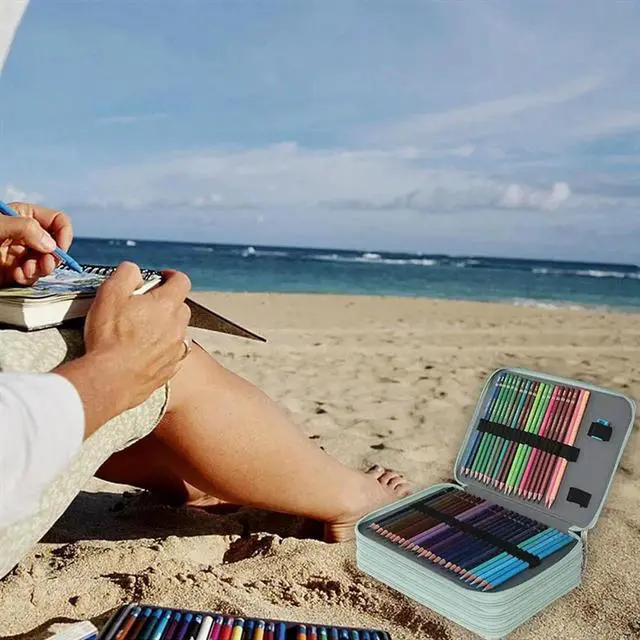 • Colored Pencil Case With Zipper Closure Capacity Polyester Pen Organizer Pencil Holder For Student Or Artist Easy Install D