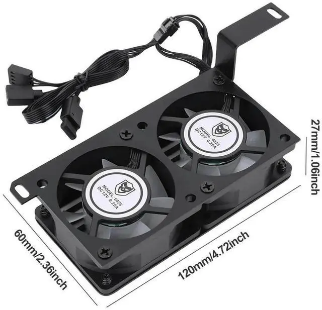 • RAM Heatsink ARGB Syn RAM Memory Cooling Fan with Dual 60mm Fan PWM 1000-3000RPM for DDR/DDR2/DDR3/DDR4/DDR5